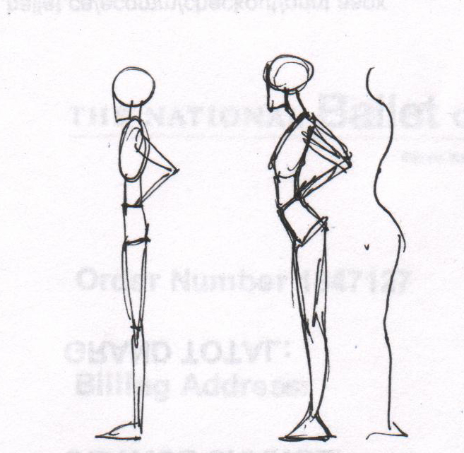 head pushes forward, neck pushes back, chest pushes forward, back curves, bum